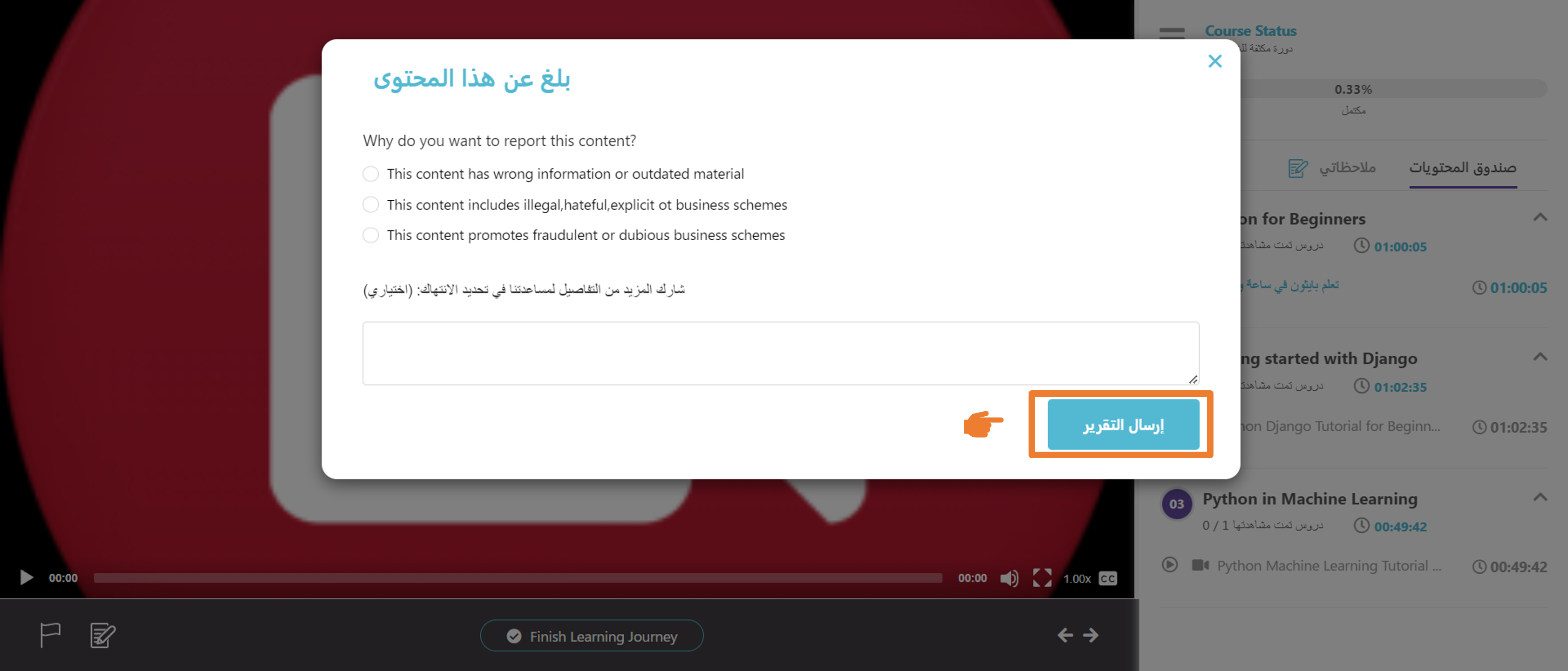 اختر فئة التقارير، ثم تابع بالنقر على زر "إرسال التقرير".